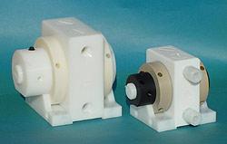 Серия включает четыре размера насоса с максимальными объемами подачи 10, 20, 50 и 130 л/мин. Корпуса насосов сделаны из твердого токопроводящего PE для использования во взрывоопасных зонах..